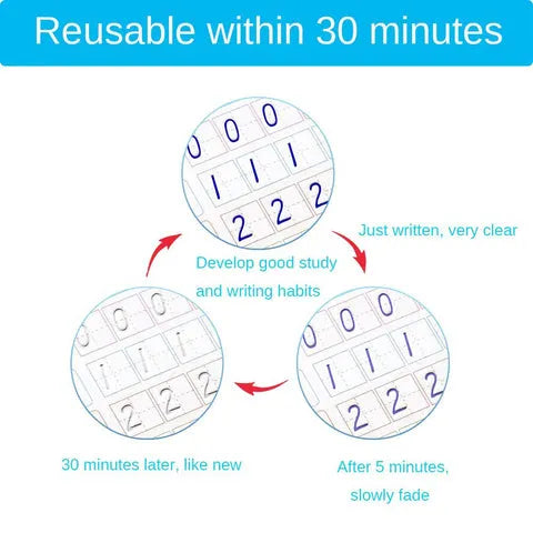 Reusable magical function: The magic practice copybook for kids will automatically fade and can be reused. Handwriting automatically disappears once dry, great for repeated practices.